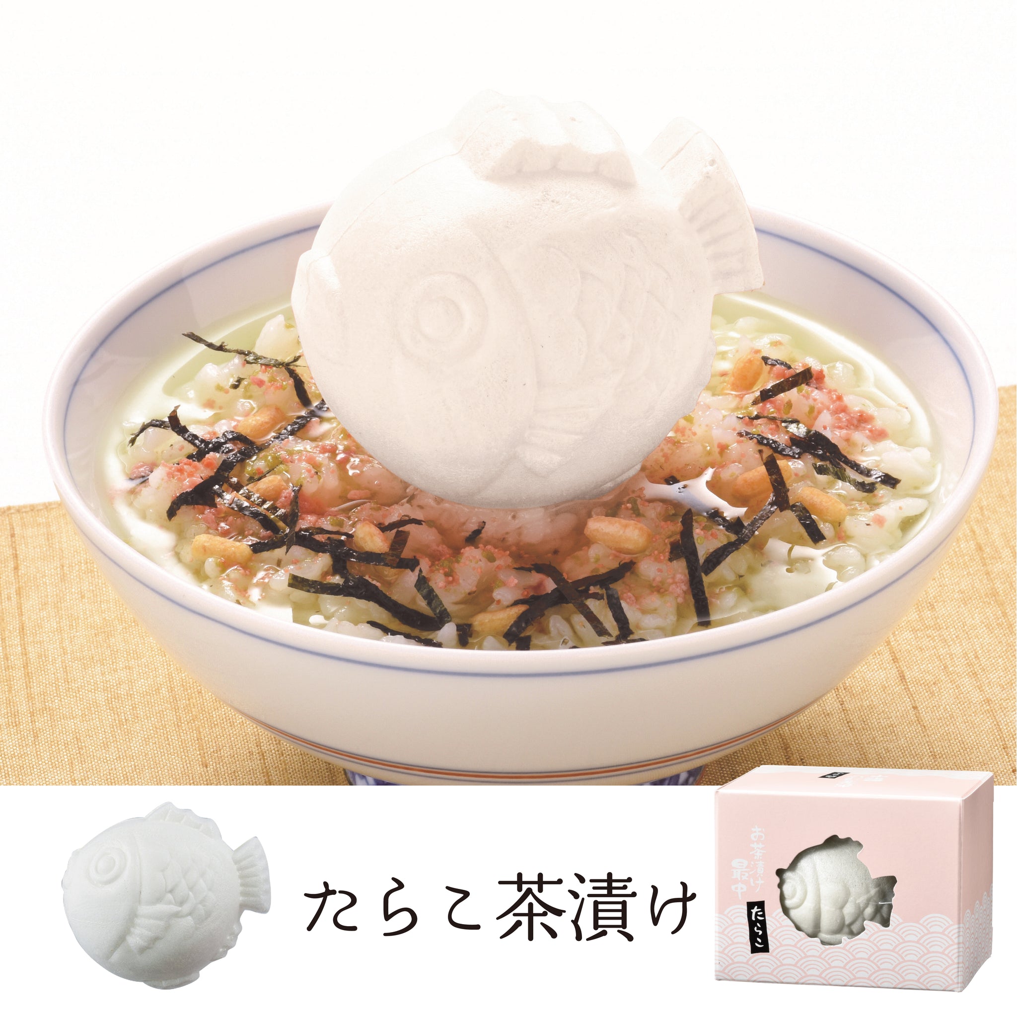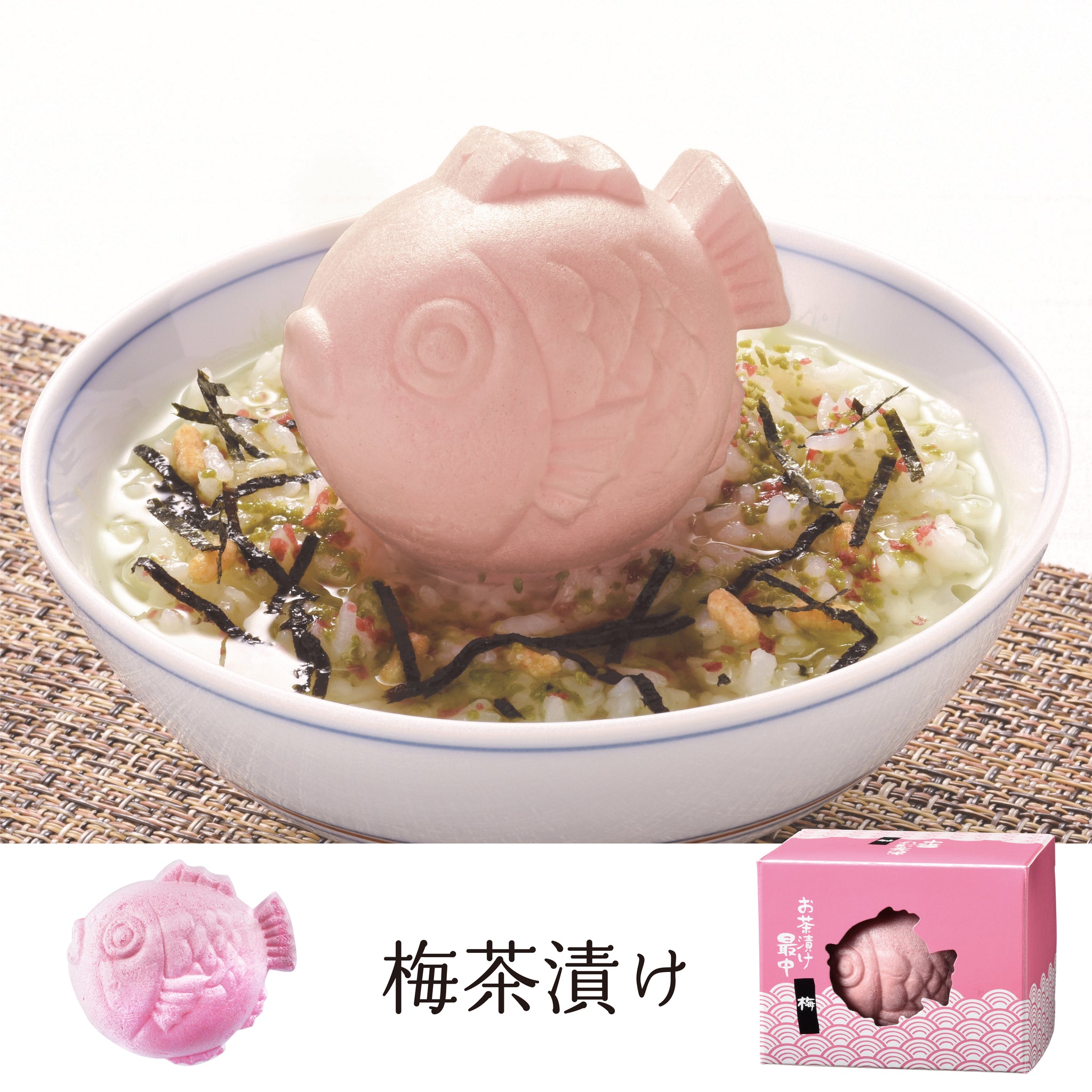 めでたい形の鯛型の最中は、みそ汁最中(赤みそ・白みそ)、お吸物最中、お茶漬け(梅・たらこ・海苔)最中のセットです。