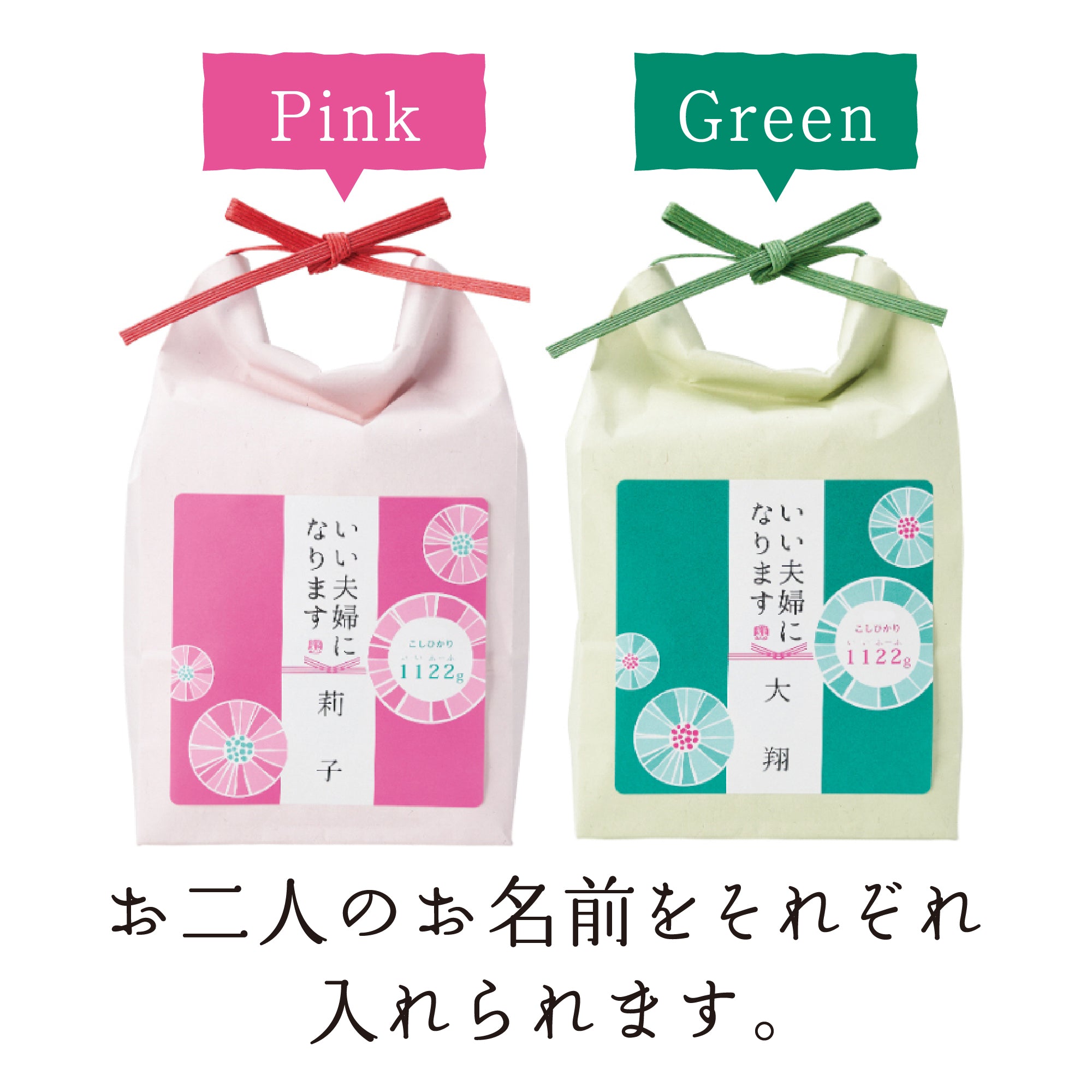ピンクとグリーンの2色が入っていて、それぞれに新婦・新郎のお名前が入れられます。